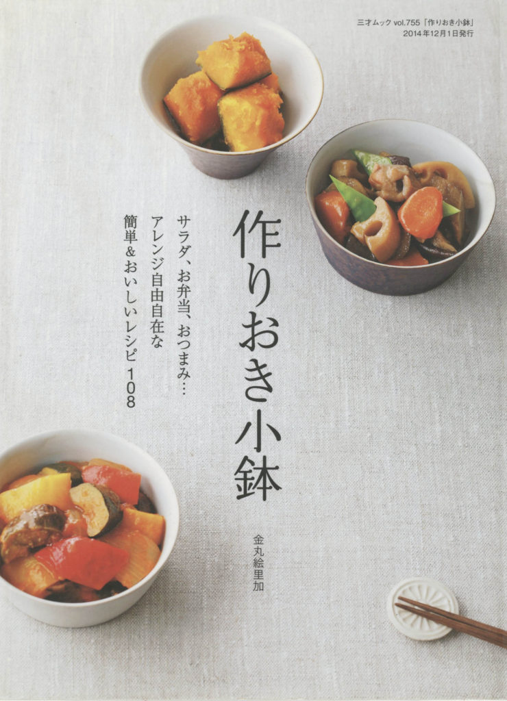 作りおき小鉢 A5版 オールカラー 128ページ 2014年発行:三才ブックス著者:金丸絵里加スタイリング:髙木ひろ子撮影:安井真喜子 作りおきおかずのレシピ集。料理家によるしっかりとした内容なのでレシピ優先で文字を最初 …